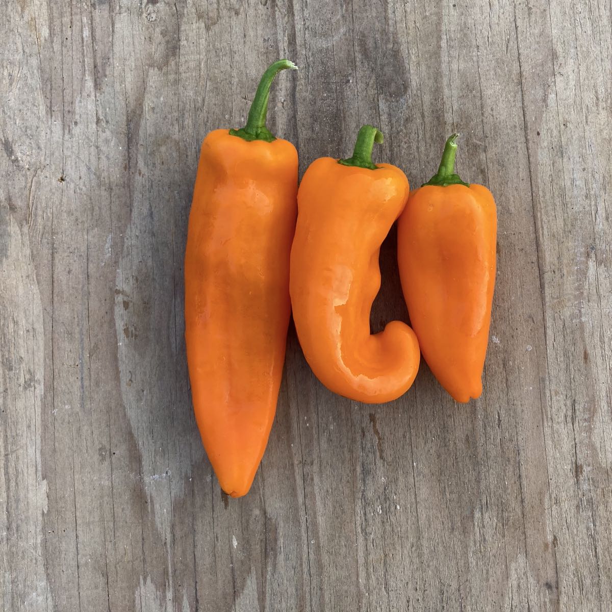Cayenne chile (HOT). Yes, these are HOT. Keep labelled and separate from your other peppers. They are smaller than the others but can overlap in size with the smallest frying peppers.